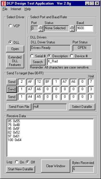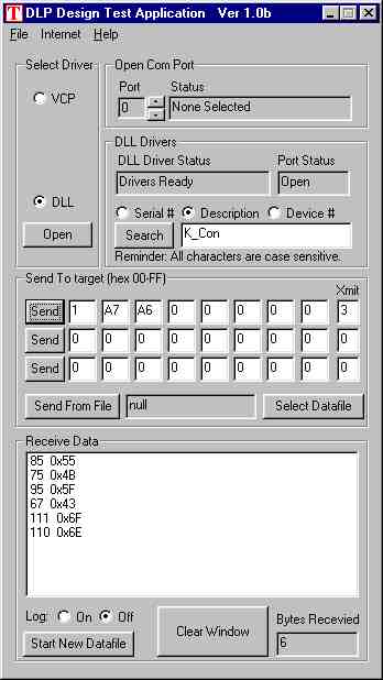 Le programmeur dispose de deux types d'outillage pour simuler l'échange d'information avec les boitiers Alpha-Kilo. Le premier outil consiste à utiliser le programme DLPtest fournit par le constructeur du micro-module (version 1 gratuite, version 2 licence payante ). Le second, les programmes de test spécifique à chaque boitier AlphaKilo-Test.Programmes DLPtest