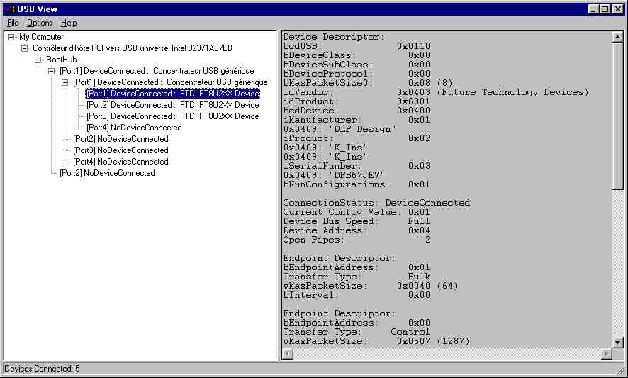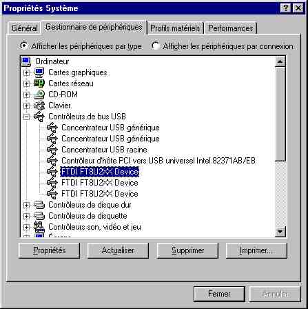 Celui-ci doit indiquer dans l'objet USB, la présence d'autant de composants FTDI FT8U2XX que de boitiers connectés.