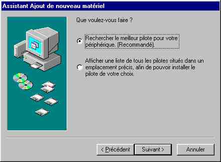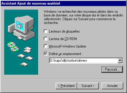 Pour indiquer à Windows quel driver utiliser, cliquer sur la touche Suivant, un nouvel écran se présente