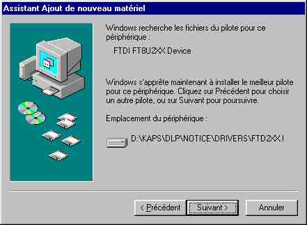 lancer le logiciel de désinstallation D:\kaps\dlp\notice\drivers\Ftd2xxun.exeLogiciels de test