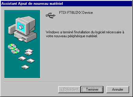 - Windows confirme l'installation du driver FTDI FT8UXX